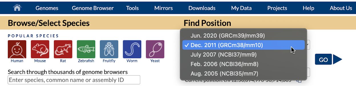 The UCSC Genome Browser Gateway page is a tool for finding and accessing genome assemblies. It features two search boxes: one for selecting an assembly and another for specifying a genomic position. This tutorial will guide you through various features of the Gateway page, including:
