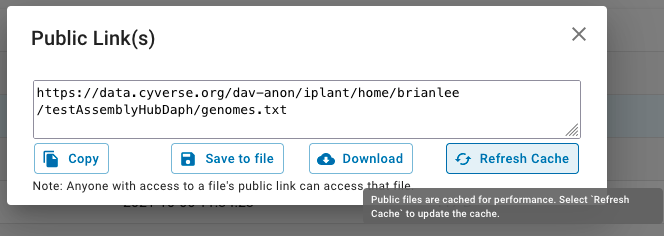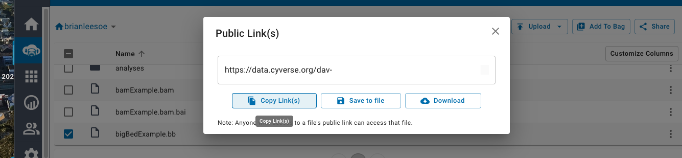 Note, if you need to replace files once they have been uploaded into CyVerse's DE and Public links