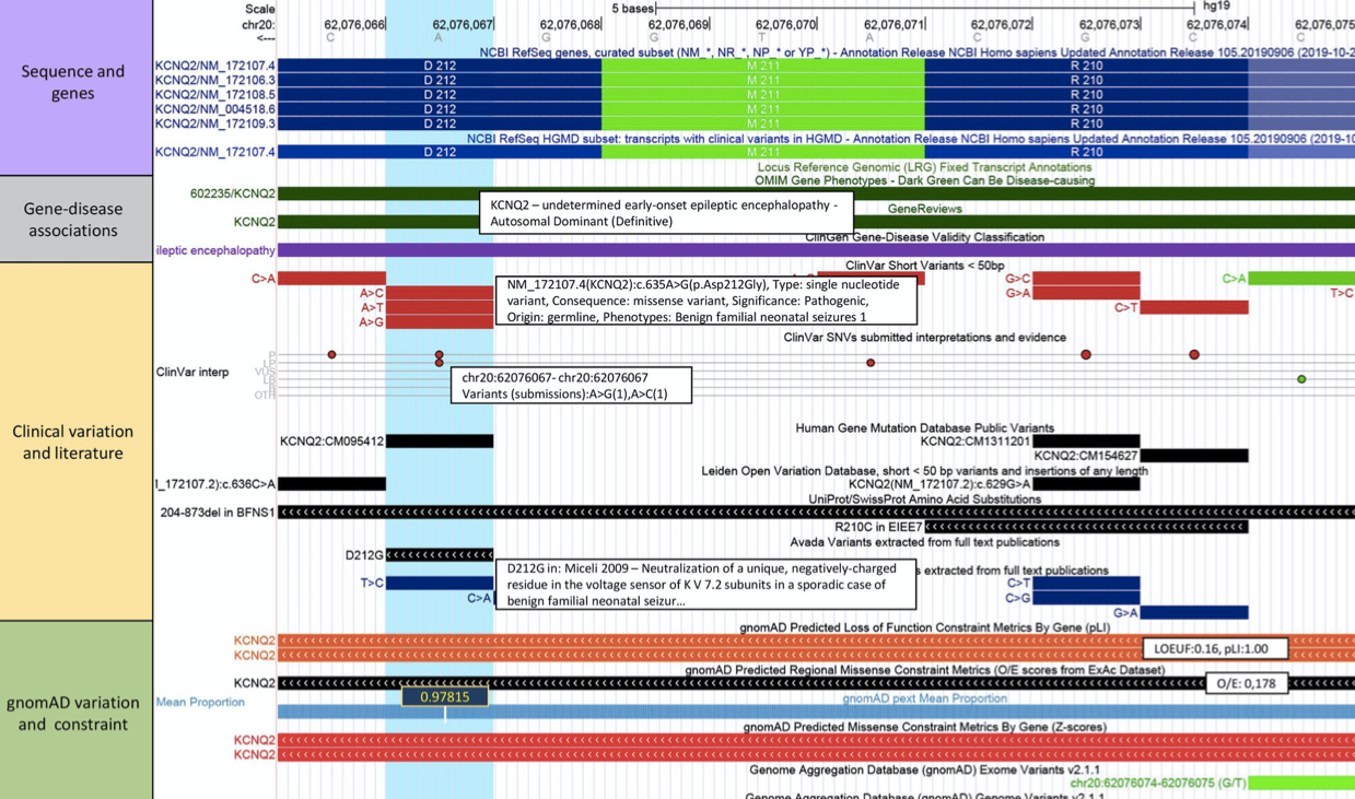 We have also updated the mouse hover for the Genomics England PanelApp track, which now shows the gene name, associated panel, mode of inheritance (if known), related phenotypes, and confidence level.