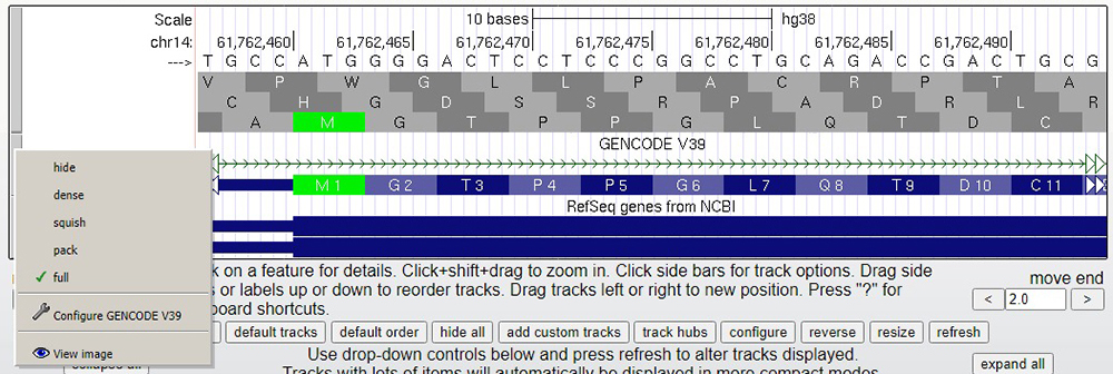 Figure 3a Right-clicking on the gray bar to the left of the "GENCODE" track will reveal this drop-down menu. From here click "Configure".